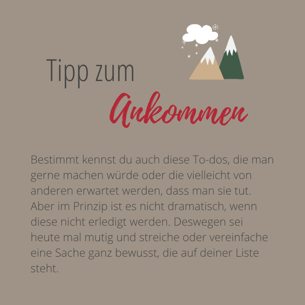 Und mir wurde klar, dass es wirklich mutig war, mitten in einem geplanten Kalender einfach eine Pause zu machen. Und ich liebte, wie Sarah mein leeres Türchen (welches ja eher negativ ist) als Entspannungs-Türchen bezeichnete. Der Fokus von meinen „ich habe es nicht geschafft, das Türchen bleibt leer“ verlagerte sich hin zu einem Moment der Entspannung. Und darum soll es doch bei diesem Kalender gehen, den Trubel verlassen und in einen Raum des Ankommens und Entspannen kommen.