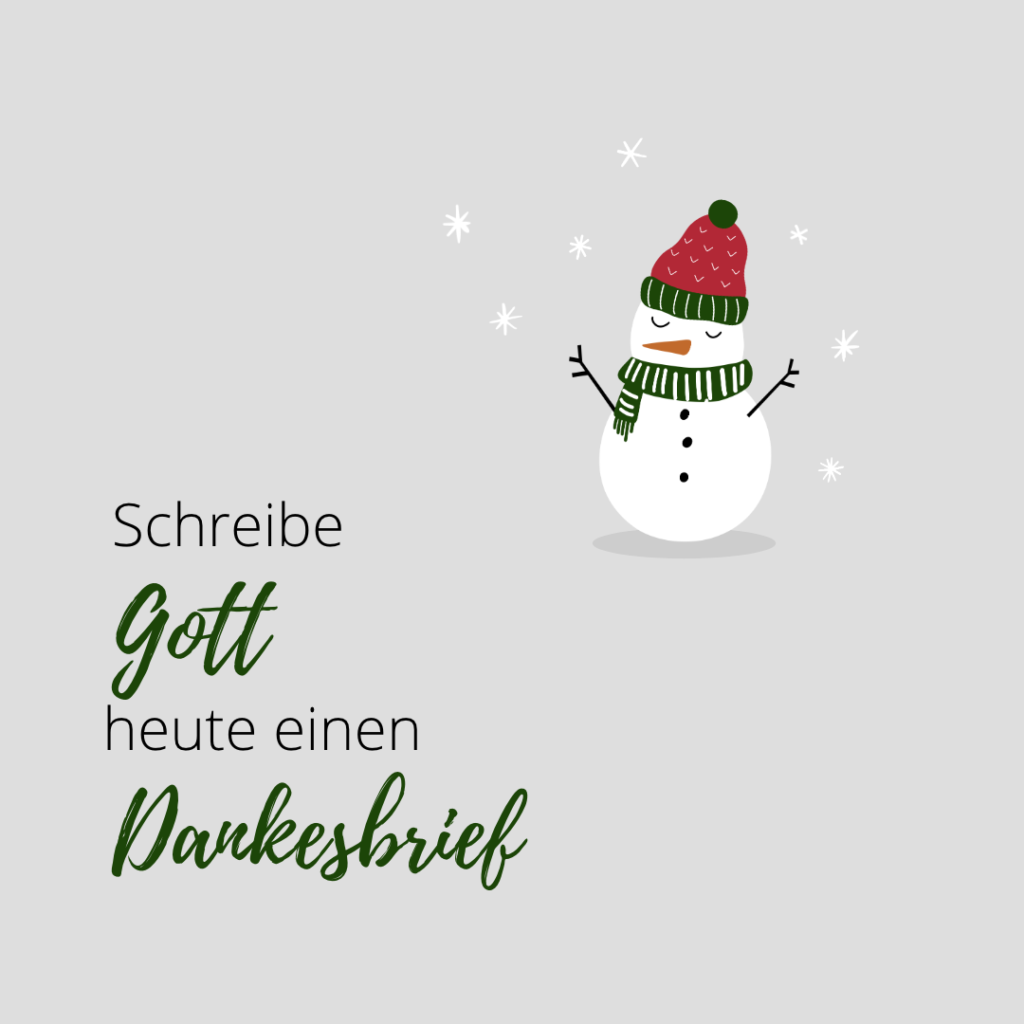 Das Jahr war wirklich herausfordernd für mich. Und mir ist bewusst, dass ich dieses Jahr nicht ohne Gottes Unterstützung überstanden hätte. Aber ich muss gestehen, dass ich in einer Sache echt mies bin, und zwar in all den Herausforderungen Dank zu sagen. Ich bin wirklich gut darin zu beten, wenn ich in Herausforderungen stecke. Aber durch ein Gespräch ist mir heute aufgefallen, dass es mir häufig schwerfällt, das Gute zu sehen, wenn es hart auf hart kommt. Und weil ich das gerne ändern möchte, habe ich mir vorgenommen, dass ich Gott einen Dankesbrief schreiben möchte.